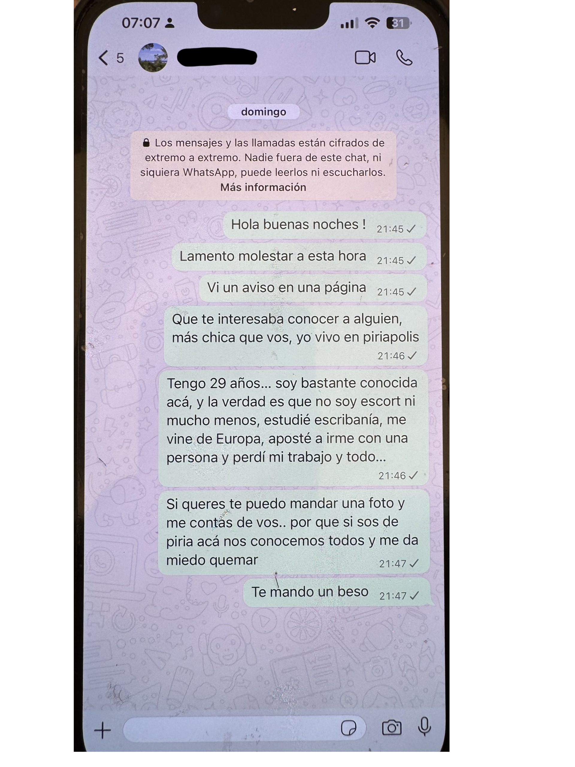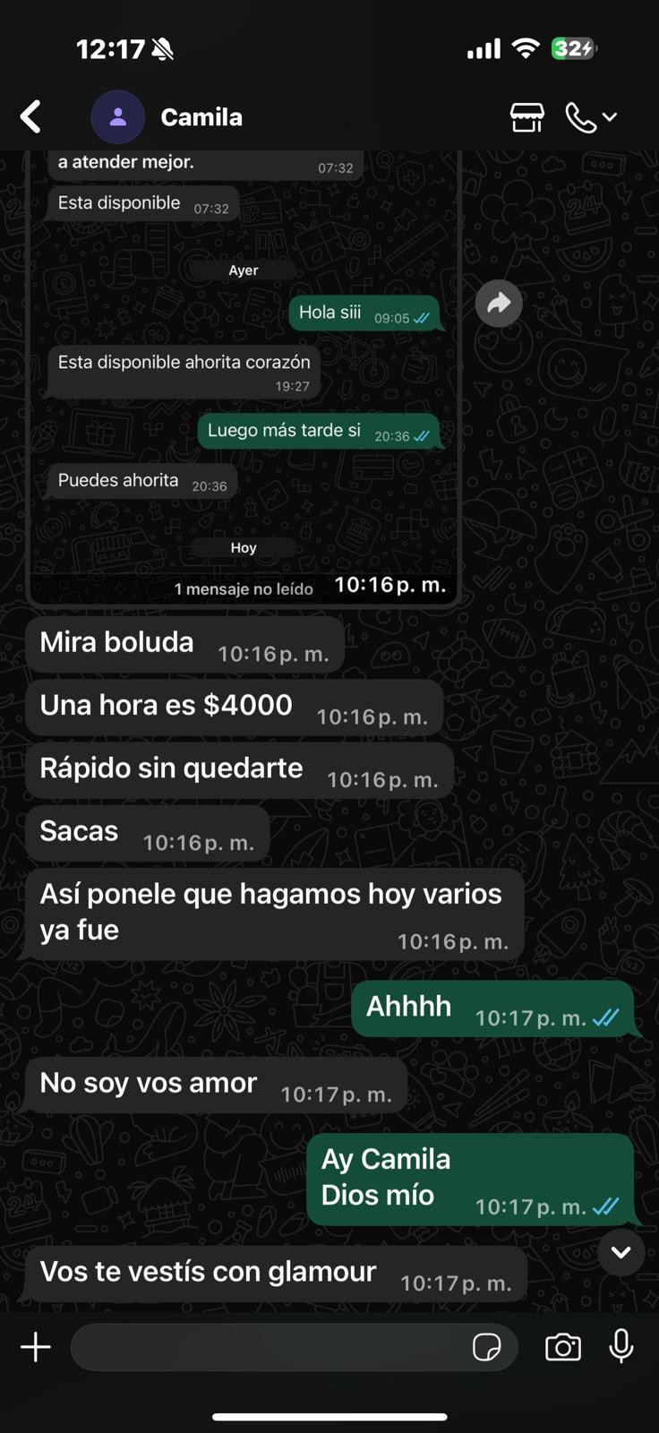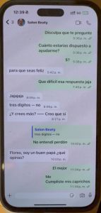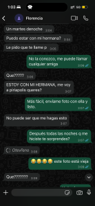 Desde marzo todo el tiempo a Florencia llegaron mensajes de veteranos para salir. Su numero era conocido desde época de escort y también desde marzo, donde Florencia puso anuncios. Por eso también una condición para seguir fue cambiar el número, que hizo un poco días antes el vuelo.